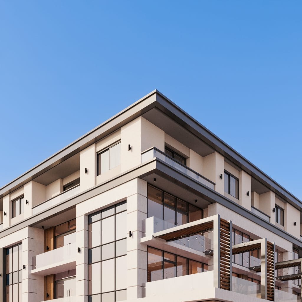The O7 Building is a modern mixed-use development in New Damietta that combines vibrant retail spaces with comfortable residential living. Designed around the concept of Structural Elegance, the building features a grand double-height colonnade podium for premium commercial units, while the upper residential levels emphasize openness and light through expansive floor-to-ceiling glazing. The refined combination of light stone and dark metal accents enhances the architectural identity, creating a balanced connection between contemporary urban life and refined residential comfort.